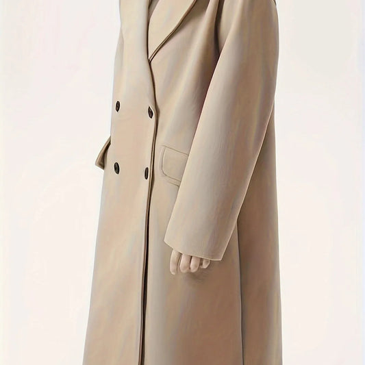 Double Breasted Simple Trench Coat, Casual Long Sleeve Outerwear