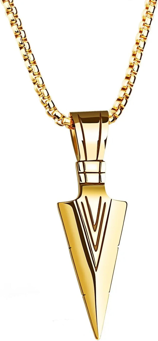 Men's Stainless Steel Jewelry Spear Point Arrowhead Pendant Necklace Multi Colors