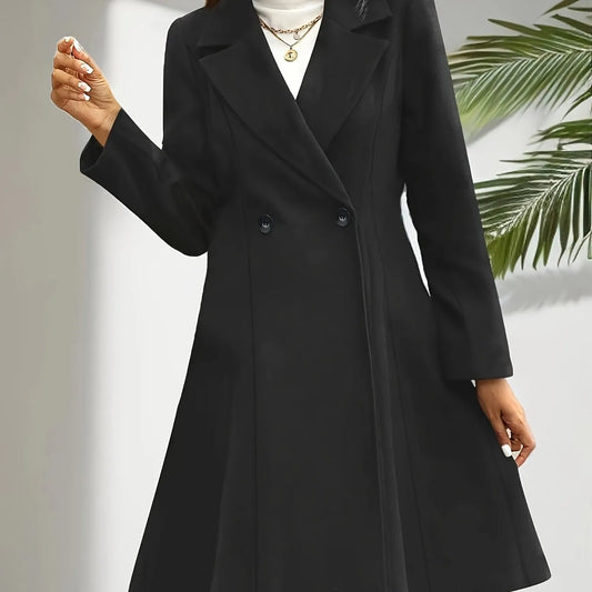 Solid Double Breasted Lapel Overcoat, Versatile Long Sleeve Thermal Winter