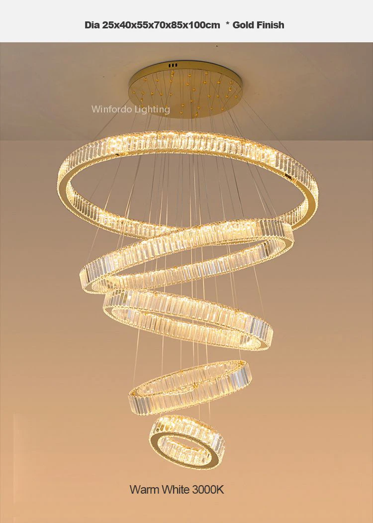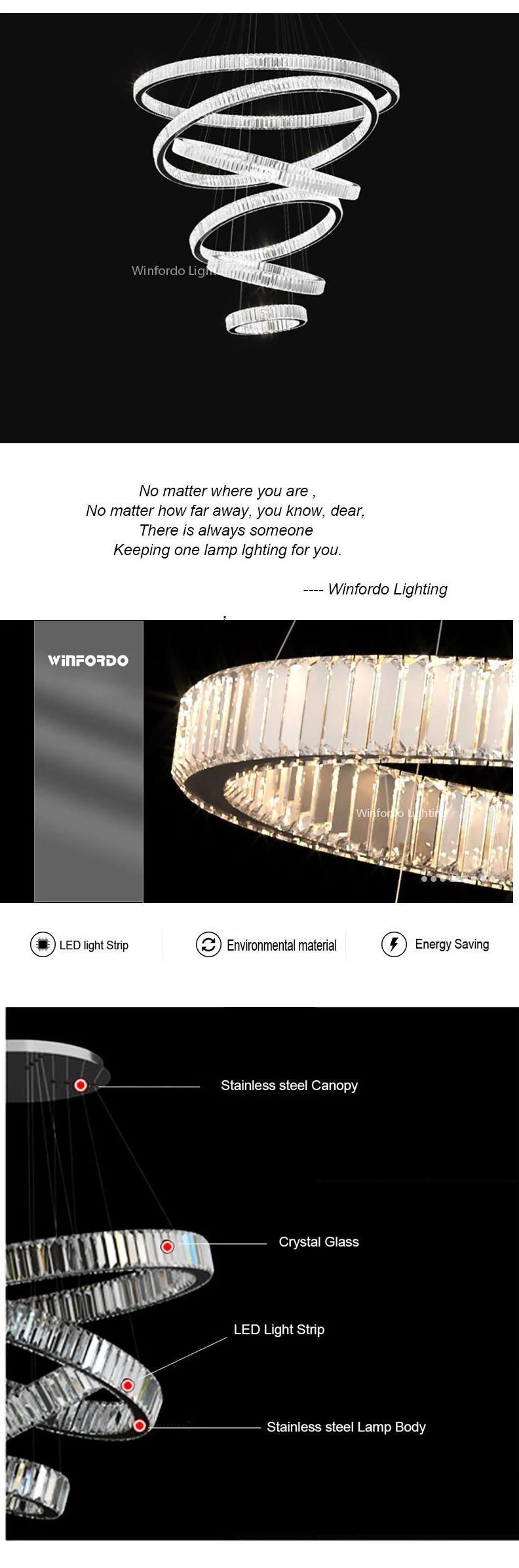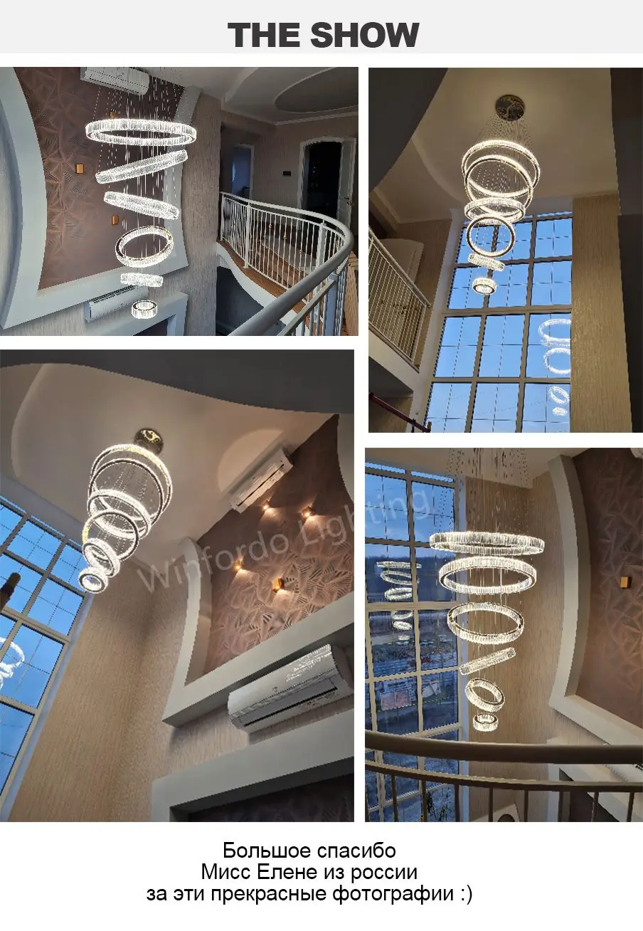 2022 Luxury Pendant Lamp LED Crystal Chandelier Lighting Fixtures Stair Light Polished Stainless For Lobby 110V / 220V Winfordo