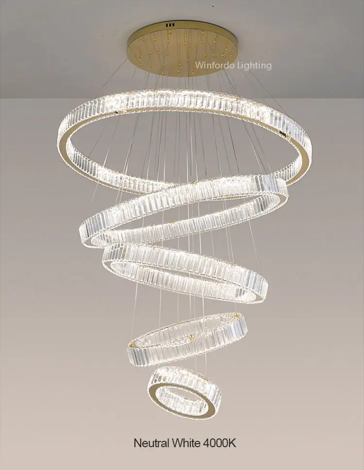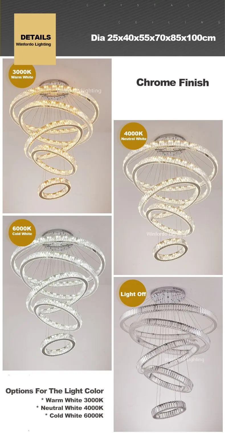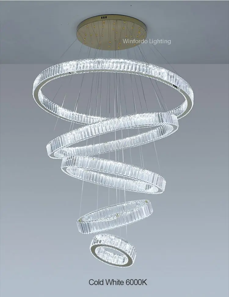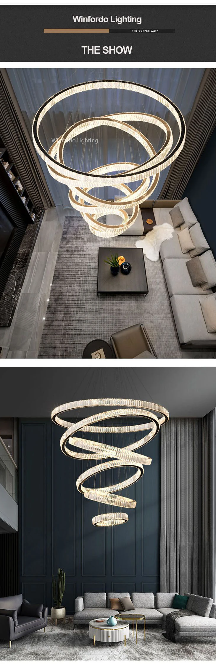 2022 Luxury Pendant Lamp LED Crystal Chandelier Lighting Fixtures Stair Light Polished Stainless For Lobby 110V / 220V Winfordo