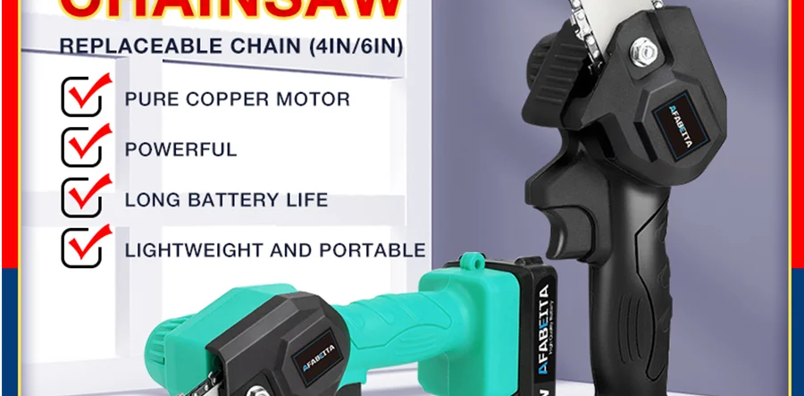 Rechargeable electric chain saw, light and portable, long battery life, no damage to the bark.
