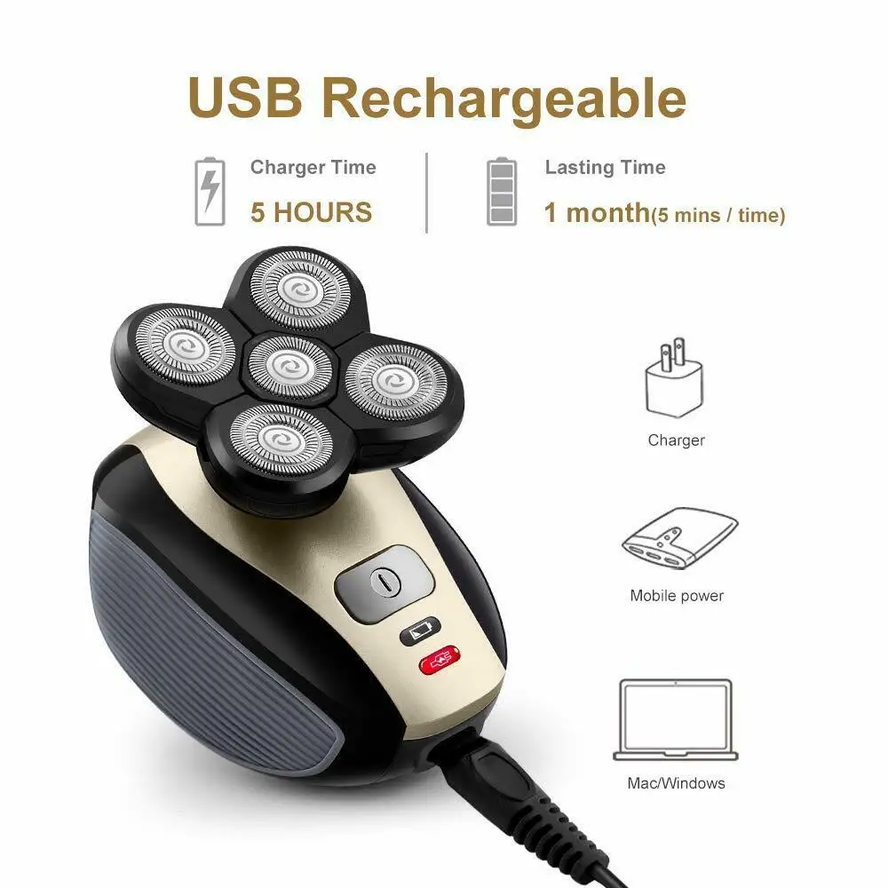 5 In 1 4D Men's Rechargeable Bald Head Electric Shaver