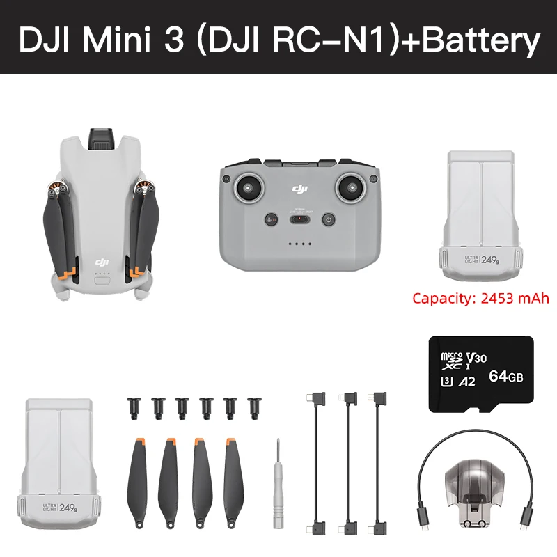 DJI Mini 3 RC-N1 Drone 38-min Max Flight Time 4K HDR Video Under 249 g True Vertical Shooting brand new in stock