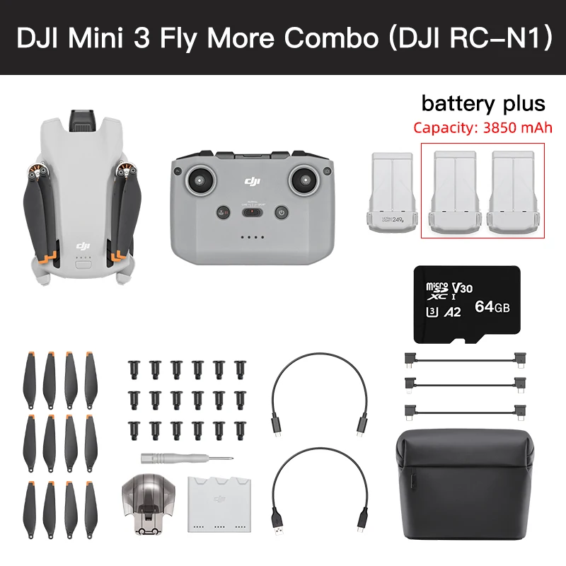 Battery: Fly More Combo comes with two additional Intelligent Flight Batteries.