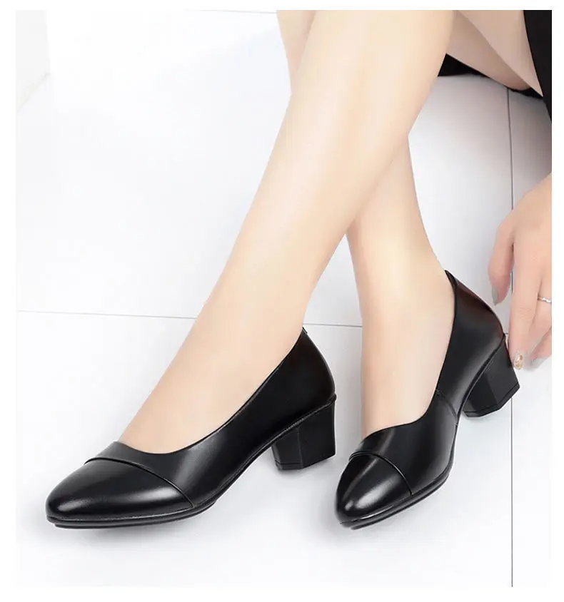 Round Toe PU Leather Fashion Elegant Casual Medium Heels Office