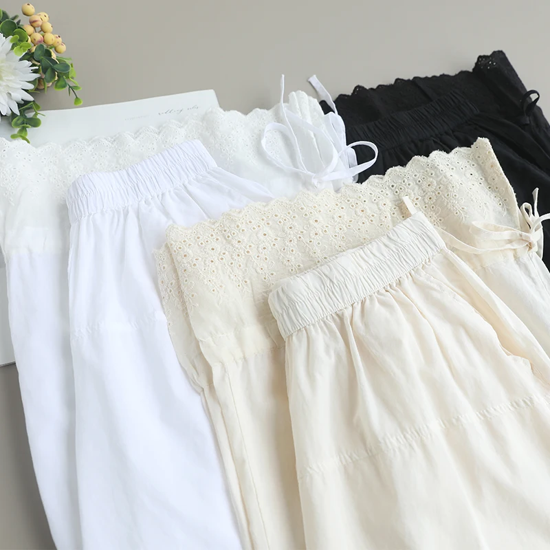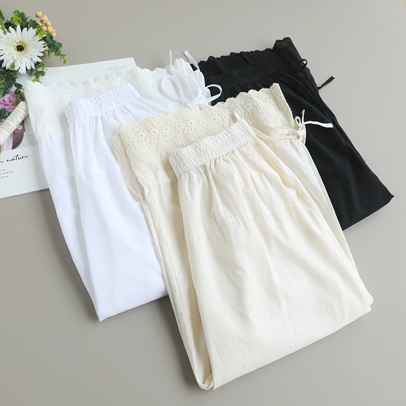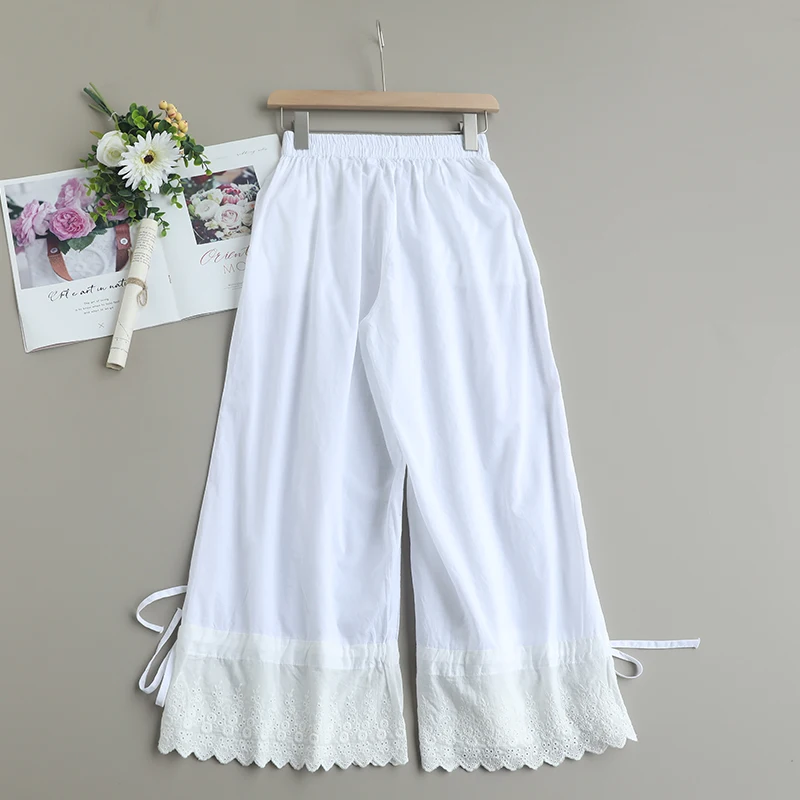 Spring Sweet Solid Color Embroidered Pants Women Casual Wide Leg Pants WH0311
