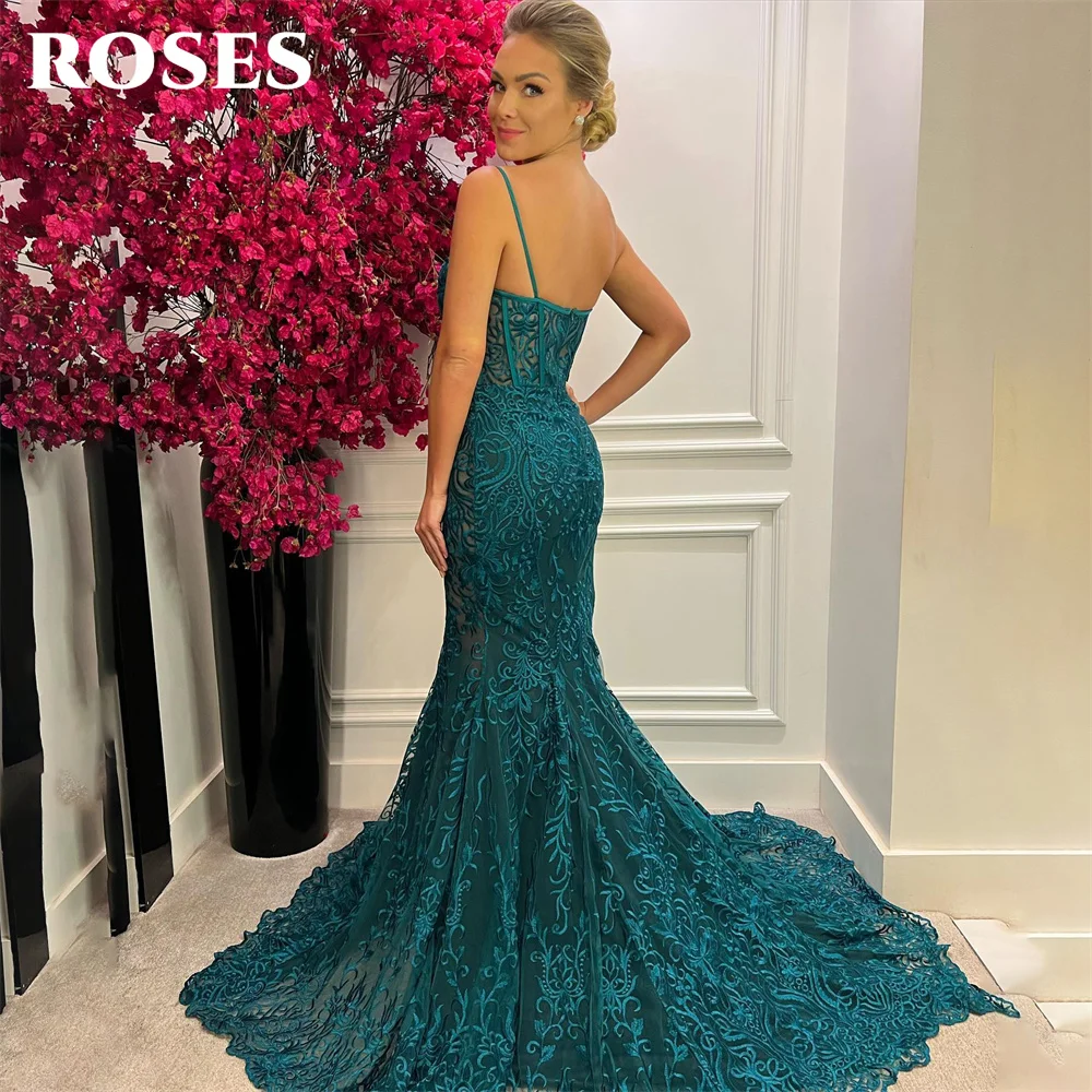 ROSES Mermaid Sexy Evening Gown Spaghetti Strap Elegant Prom Dress Mermaid Trumpet Lace Wedding Evening Dress robes de soirée